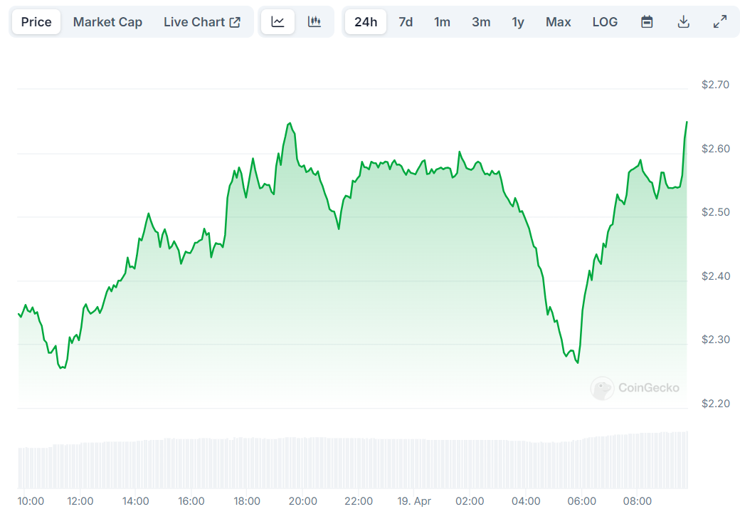 However, the adverse trend was short-lived, with the crypto market being well in the green zone today (April 19). One of the best performers is the biggest meme coin built on the Solana blockchain – dogwifhat (WIF) – which spiked by approximately 15% on a 24-hour scale.