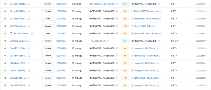 According to BeInCrypto data, HLG is trading at $0.00708 at the time of writing. The asset’s market capitalization has decreased to $10.7 million. At current prices, the coins issued by the hacker are worth about $7.1 million. However, four hours after the attack, he converted the tokens into Tether (USDT), allowing him to withdraw much more money.