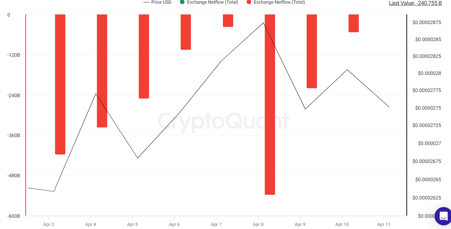 Several key factors indicate that the second-largest meme coin by market capitalization could experience a significant price surge in the short term. One crucial factor is SHIB’s exchange netflow, which has been negative in the past week according to CryptoQuant’s data. This shift from centralized platforms to self-custody methods is seen as a bullish sign, as it reduces immediate selling pressure.