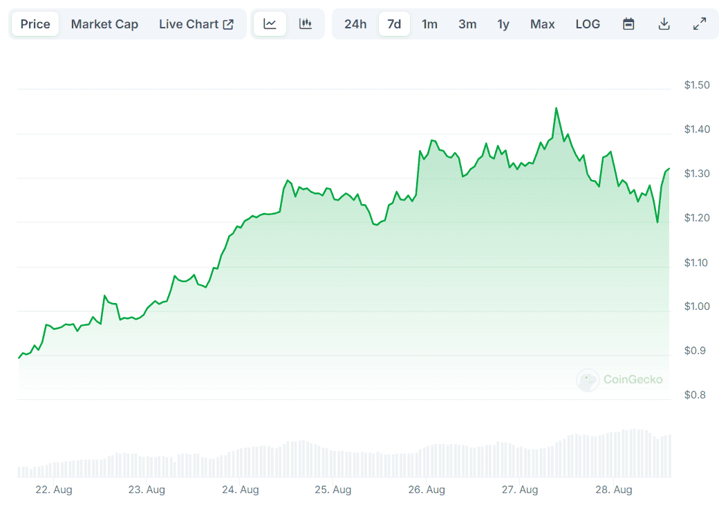 Artificial Superintelligence Alliance (FET), for example, exploded by almost 50%, reaching a local top of $1.47 on August 27. Currently, it trades at around $1.32, representing a whopping 550% increase since August 2023.