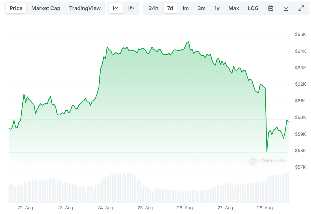 The valuation of the leading digital asset passed through numerous ups and downs throughout that period. While BTC was worth less than $60,000 a week ago, it registered a substantial rally between August 23 and August 26.