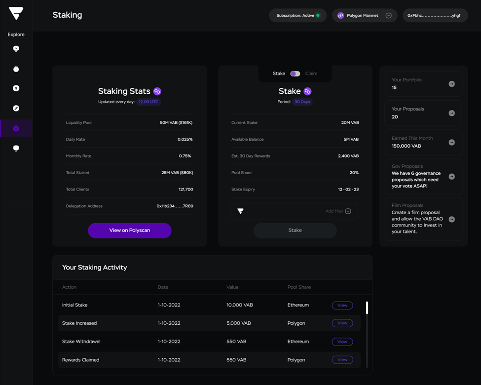 In the Vabble ecosystem, stakers play a critical role in deciding what content gets distributed. Through a participatory process, stakers vote on proposals for new content, directly influencing the streaming platform’s offerings.