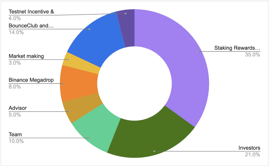 BB is the native token that powers the BounceBit platform. The total supply is capped at 2.1 billion (paying homage to the number of 21 million – Bitcoin’s capped supply.)