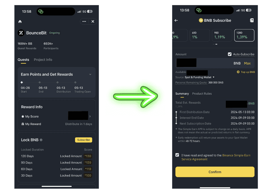 Now that your account is ready, the first thing you can do is navigate to the Megadrop section and lock your BNB to earn scores. From there, you can subscribe to your BNB and lock it for a certain period of time, thus earning a score.