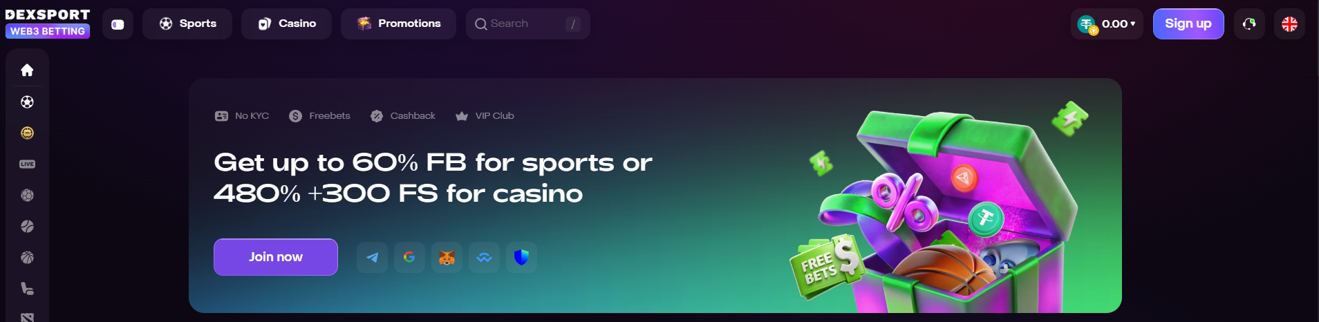 Dexsport removes that layer. Users can register through email, Telegram, or a crypto wallet and start betting immediately, without submitting identity documents.