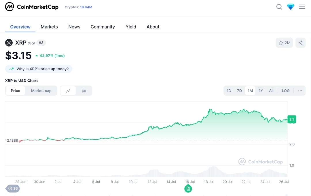 Ripple’s price still struggles to stay above $3. Growth has been slow. While Ripple’s tech and use case is strong, it faces heavy competition from newer projects.
