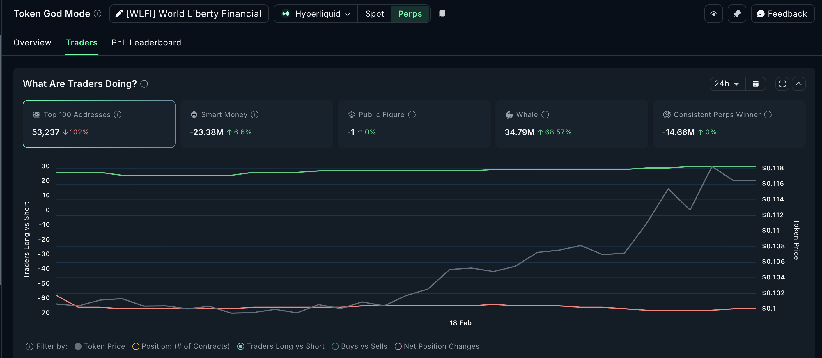 Smart Money, which tracks positioning by experienced traders, shows a net short position over the past 24 hours, hinting at caution.