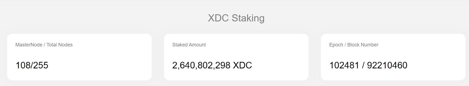 Data from XDC’s Masternode dashboard indicates 2,660,802,298 XDC are currently staked via active masternodes and delegated pools. At the current market price of $0.092 per token, that stake is valued at approximately $245 million USD.
